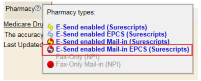 Even though providers are capable of electronically prescribing controlled substances, not all pharmacies are capable of receiving these electronic requests. WebChart displays which pharmacies are EPCS-enabled when a pharmacy is selected for a patient.